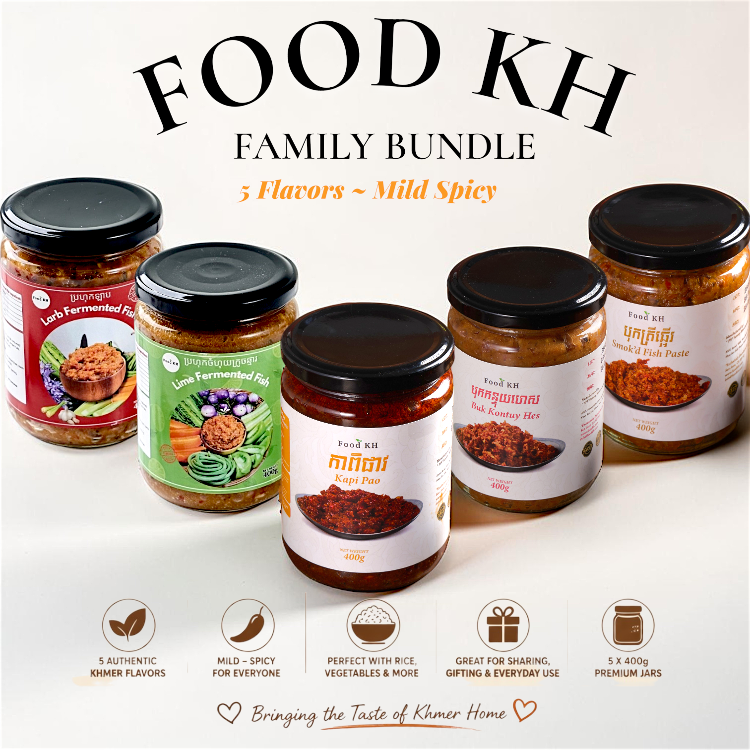 Enjoy three delicious Khmer pantry staples in one bundle: Kapi Pao 400g, Khmer Umami Paste (Bok Kantuy Hes) 400g, and Crushed Smok’d Fish Paste 400g. All come in mild spicy for a rich, balanced flavor the whole family can enjoy.