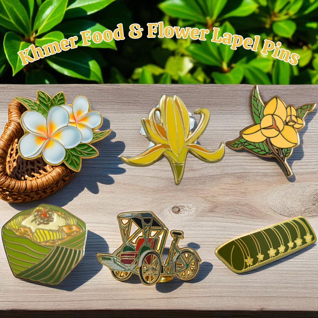 Discover our Khmer Food & Flower Lapel Pins — a charming collection inspired by Cambodia’s iconic blooms and traditional cuisine. Perfect for collectors, gifts, and adding cultural flair to any outfit.
