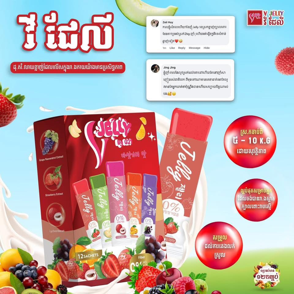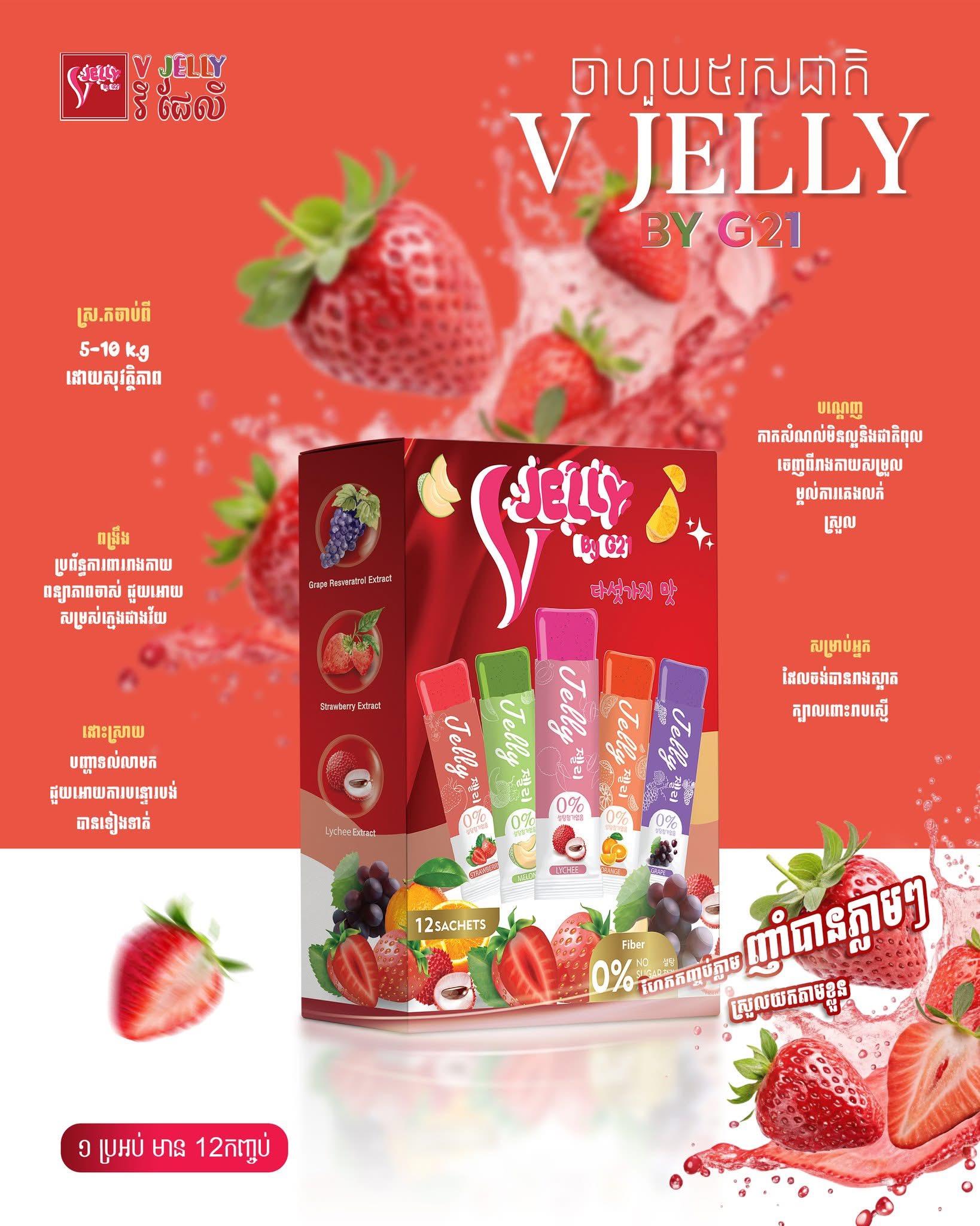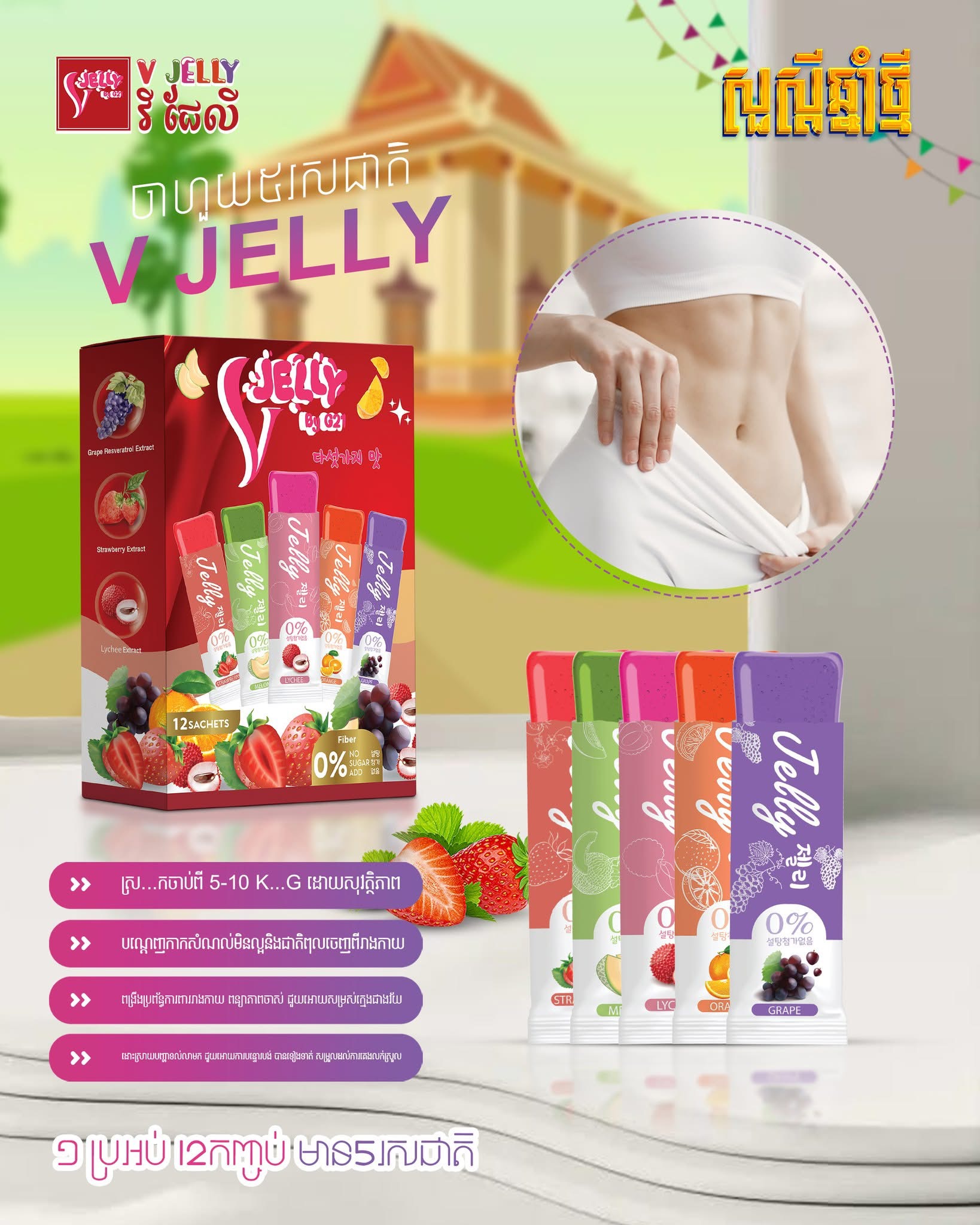V Jelly Fiber ចាហួយសម្រក 5 រសជាតិ សាច់ចាហួយឆ្ងាញ់ទន់ស្វិត